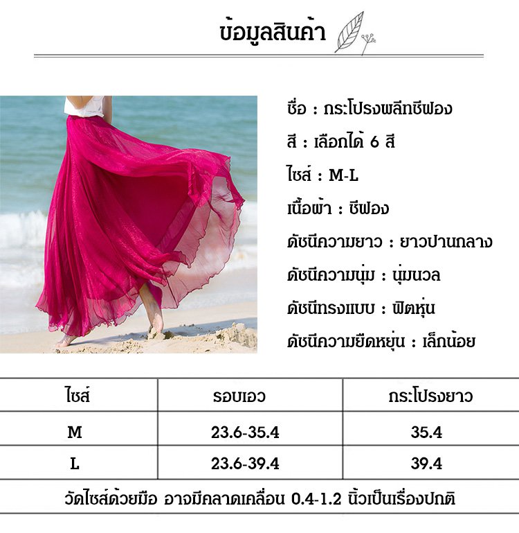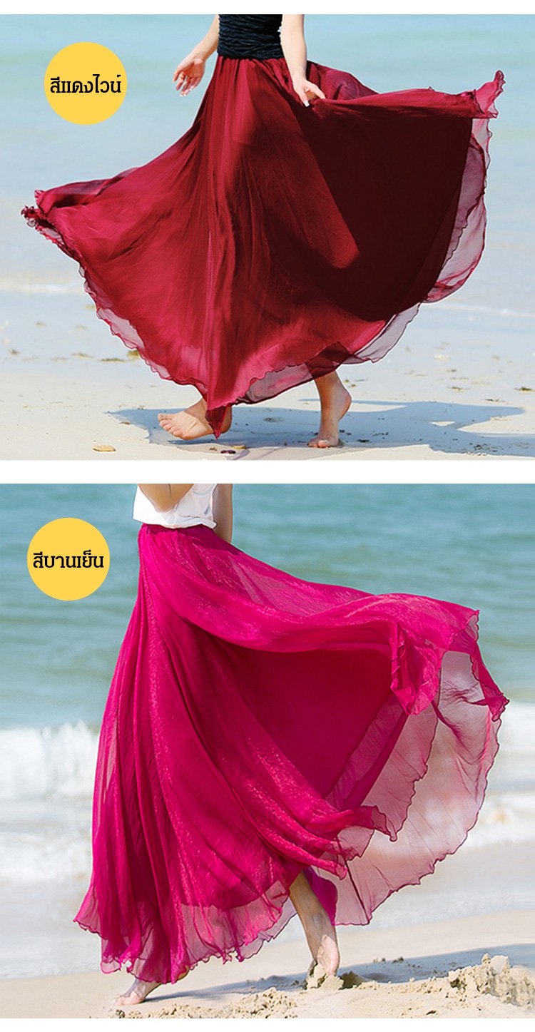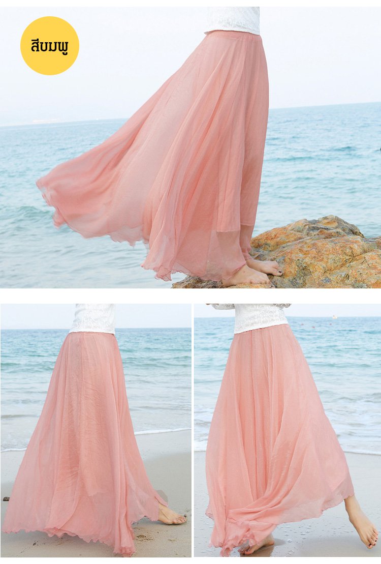 กระโปรงยาวพลีทชีฟอง ใส่ได้ 3 แบบ