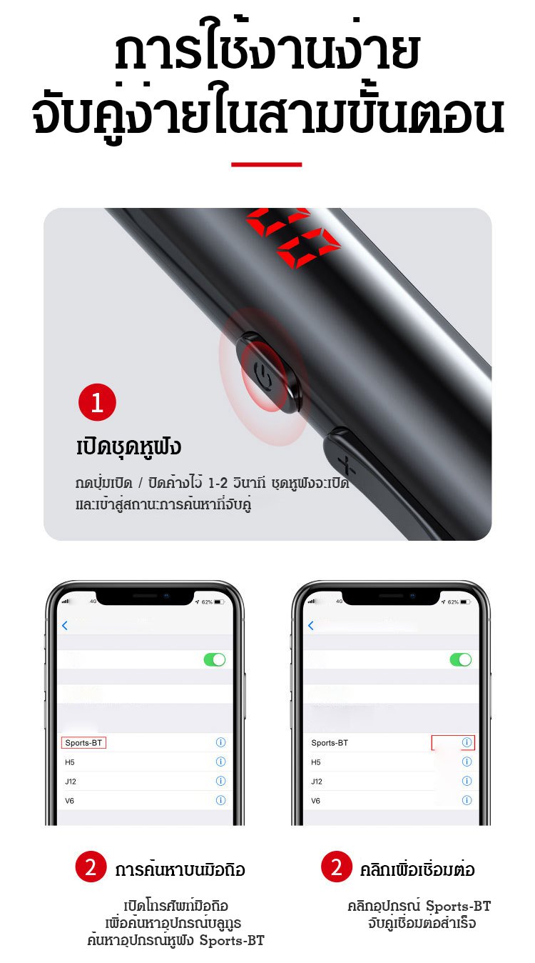บลูทูธ 5.0 แบบคล้องคอพอดีหู หูฟังใส่วิ่งได